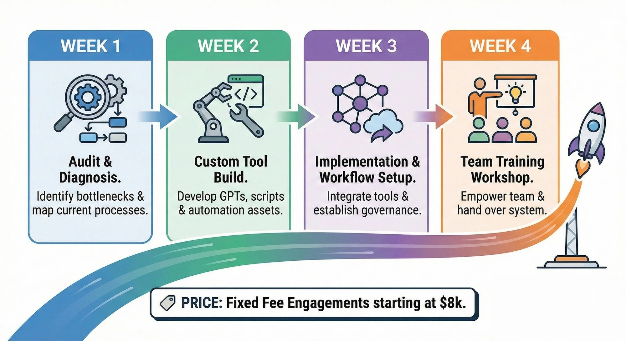 Price: Fixed Fee Engagements starting at $8k.